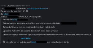 V teh dneh smo opazili povečano število spletne pošte, ki jo prejemajo uporabniki, z naslovom NAVODILA ZA nova pošta. Bodite pozorni in previdni, saj gre za prevaro.